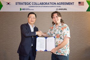 [중앙이코노미뉴스 송태원] HD현대가 미국의 AI 방산기업 안두릴 인더스트리(Anduril Industries, 이하 안두릴)와 손잡고 자율 무인수상함 시장에 본격 진출한다.HD현대는 최근 미국 안두릴과 자율 무인수상함(Autonomous surface vehicle, 이하 ASV)의 설계, 건조 및 AI 솔루션 공급 계약을 체결했다고 밝혔다. 서울 중구 웨스틴 조선호텔에서 열린 계약 체결식에는 HD현대중공업 주원호 사장(함정·중형선 사업대표)과 안두릴의 팔머 럭키(Palmer Luckey) 공동설립자가 참석했다.HD현대는 ASV를