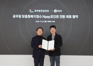 [중앙이코노미뉴스 김수현] 네이버페이(Npay)는 공무원연금공단과 맞춤형복지점수를 Npay 포인트로 전환할 수 있는 시스템 구축 및 운영을 위한 업무협약을 체결했다고 25일 밝혔다.이번 협약을 통해 전국 80만 명 이상의 공무원들이 사용하는 '맞춤형복지점수'를 2026년부터 Npay 포인트로 전환할 수 있는 서비스가 제공된다.공무원연금공단의 맞춤형복지점수는 공무원의 생활 맞춤형 복지를 지원하기 위해 운영되는 제도로, Npay 포인트로 전환 시 별도의 청구 절차 없이 Npay의 다양한 온·오프라인 결제처에서 편리하게 사용할 수 있다.