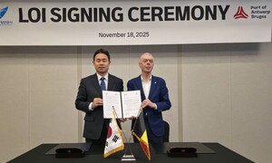 [중앙이코노미뉴스 김영철] 경기평택항만공사(사장 직무대행 김금규)는 18일 그랜드 인터컨티넨탈 서울 파르나스에서 대한민국 최대 자동차 항만인 평택항과 유럽 최대 자동차 항만 안트워프·브뤼헤항(Port of Antwerp-Bruges) 간 녹색해운항로(Green Shipping Corridor, GSC) 공동 구축을 위한 '의향서(LOI)'를 체결했다고 밝혔다.이번 LOI는 국제해사기구(IMO)가 제시한 2050년 온실가스 배출 제로(Net-Zero) 목표에 발맞추고, 평택항이 미래 친환경 자동차 항만으로 지속적으로 도약하기 위한 전